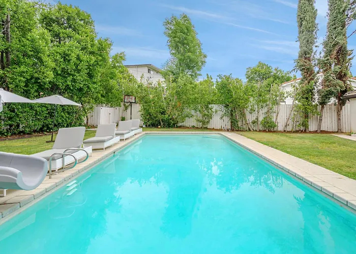 この別荘はフランクリン・キャニオン・パークから3.1キロメートル離れた所で、ローレル・キャニオンから自動車で約10分離れた場所にあります。 シャーマン オークス キャッスル パークなどの家族向けの施設も宿泊施設から4.6キロメートル先にあります。 Exquisite Oasis Near Universal Studios With Large Pool ヴィラはユニバーサルスタジオハリウッドから車で15分くらいで、ギブソン・アンフィシアターなどの文化施設から自動車で20分です。